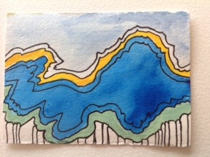 This little sunflower is an exact expression of how I feel today,bright, robust, full of life, good health, joy, peaceful bliss, beauty, alive! What a thrill it was to thrive in a mediative state throughout the painting of this mini masterpiece. This sunflower reminds me of a row of sunflowers Jason’s dad planted the summer Jason passed away. After Jason’s death and when I returned home from his hospital bedside the row of blooming sunflowers were the only spot of beauty on my horizon. And memories of Jason’s last birthday party here before they bloomed, he turned 41.